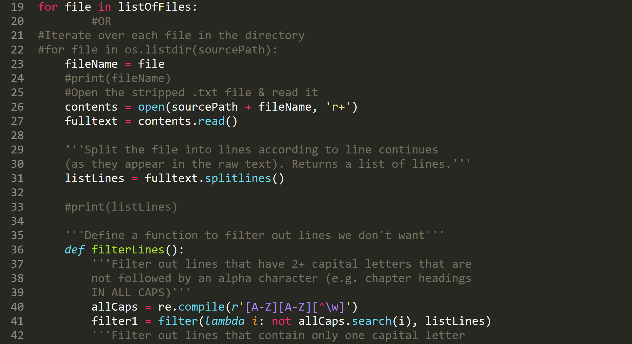 This folder contains a number of Python scripts I used to prepare the corpus for modelling. As an overview, I followed these general steps to prepare the file: